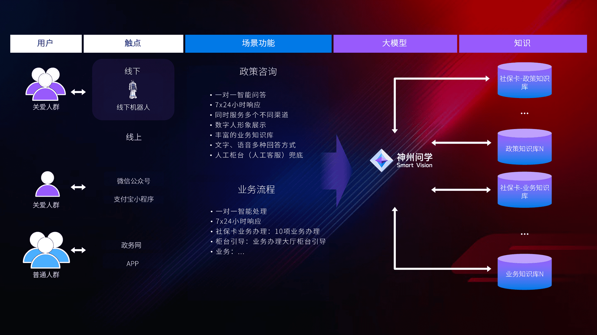 • 线上线下全覆盖:线上提供微信公众号、、、支付宝小程序、、、、政务网、、、app多种渠道,,与线下机器人形成完整服务体系。。。。